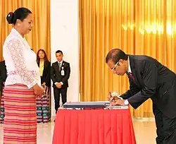 ![]() Ximenes receiving her accreditation from Taur Matan Ruak on 11 February 2016 | |