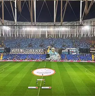 Adana Demir's homeground is the Adana Stadium since March 2021. The stadium has a capacity of 30960 seats.[25] The stadium's north seats are painted to Adana Demirspor's jersey colors and south seats are painted to Adanaspor's jersey colors. Şimşekler group gather at the North Stand, other fan groups tend to gather at the northern section of the East Stands. From 1940 to 2021, the football team played their home games at the now defunct 5 Ocak Stadium. The waterpolo team played their home games at the Atatürk Swimming Complex from 1940 to dissolution. Menderes Sports Hall hosted club's basketball and volleyball teams.