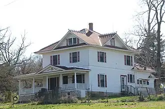 It is a two-story American Foursquare house with Classical Revival detailing, including a wraparound porch supported by Classical columns with an entablature, and a modillioned cornice under the roof. Built in 1897, it is a somewhat flamboyant expression of late Victorian styles for a rural setting.[2]