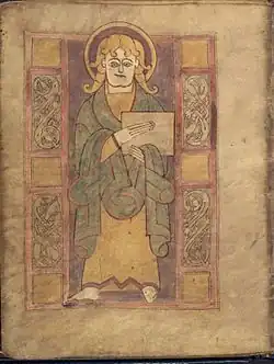 British Library, Add MS 40618 is a late 8th century illuminated Irish Gospel Book with 10th century Anglo-Saxon additions. The manuscript contains a portion of the Gospel of Matthew, the majority of the Gospel of Mark and the entirety of the Gospels of Luke and John. There are three surviving Evangelist portraits, one original and two 10th century replacements, along with 10th century decorated initials. It is catalogued as number 40618 in the Additional manuscripts collection at the British Library.[1]