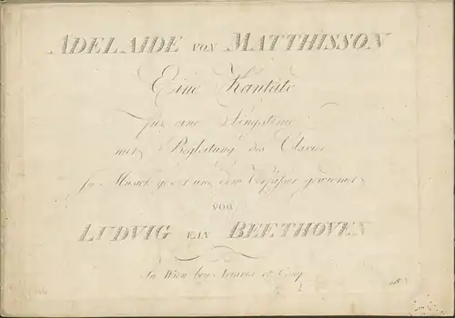 - ADELAIDE by MATTHISSON. A cantata for voice with keyboard accompaniment. Set to music, and dedicated to the author, by LUDVIG van BEETHOVEN. Artaria and Co., Vienna.