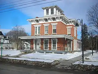Adon Smith House is a historic home located at Hamilton in Madison County, New York. It was built about 1850 and is a 2+1⁄2-story brick dwelling with Italianate elements. It features a U-shaped porch with elaborate wrought iron columns and railings and has a glazed belvedere. It is now used as the village office building.[2]