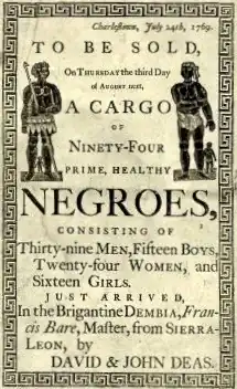 Most of South Carolina's slaves were imported from the Angola-Congo region, Senegambia and Sierra Leone.[9]