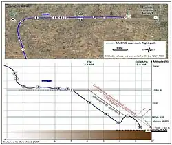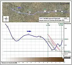 Approximately 8 nautical miles from the airport, Captain al-Saadi stated that they should do the "NAV approach". Afterwards, Captain al-Saadi asked the first officer to track the "FPA", which would show the aircraft's relative position to the airport's navigation. When it was 7 nautical miles from the extended runway centreline, the aircraft was established for an approach. At 5:29 local time, Captain al-Saadi contacted Tripoli ATC, which cleared the flight to continue to Tripoli and to report the runway in sight.[10]: 63