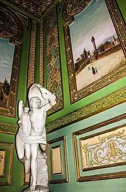 Agabala Guliyev was one of the monarchs of Baku who often traveled to Western Europe. He decided to build a house in the traditions of local architecture. He owned several properties in the Icheri Sheher. He was against the European style used in urban buildings, so he hired Skibinsky and ordered him to employ the Shirvanshah's Palace, Middle East and Arabic architecture. As the Shirvanshahs Palace was nearby, Skibinsky acquired photographs of Middle Eastern architecture. This architecture had attracted the attention of European and especially German scholars; albums, trials and other iconographic material were accessible to Skibinski.[2][3]