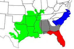 | Geographic variation of A. piscivorus[1] A. p. piscivorus Intergradation