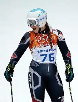Agnese Āboltiņa (born 7 February 1996) is a Latvian alpine skier. She was born in Riga and competed at the FIS Alpine World Ski Championships 2013 in Schladming, as well as at the 2014 Winter Olympics in Sochi, in giant slalom, slalom and super-G.[1] She placed 31st in super-G and 37th in slalom at the 2014 Olympics.[2]