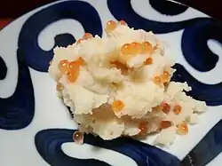 - Also called cipor imo. Potatoes (imo) are boiled with skin on. Salmon roe (cipor) is placed in a separate pot and cooked over low heat until it starts to break down. The skin is removed from the cooked potatoes and they are sliced thickly before placing into the pot with the salmon roe. Salt is added and everything is mixed well.