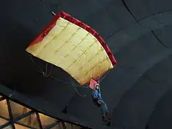 The "Knebl and Dietrich" factory was founded in the town of Inđija in 1923, as the "factory of flying equipment, parachutes and leather suits". Production of parachutes began in 1934, originally under the license from the US Irvin Airchute Company. Co-owner Miroslav Dietrich designed first Serbian parachute, "Spas", in 1930, but the production started after the US licensed ones. Until 1941, the company produced 2,500 parachutes. The company was nationalized in 1947, renamed "Franjo Kluz" and moved to Belgrade. The production diversified, including sports, military, landing, training, pilot, emergency, brake, cargo and other special parachutes, overalls, suits, armor vests, paragliders and other special equipment, overalls, suits, etc.[2] By 2007, over 200.000 parachutes were produced and exported, while additional 55,000 were produced for domestic use, both military and civilian. The company was divided in several parts which mostly went bankrupt, but "Kluz padobrani", which handled the parachutes production was privatized in 2006. Since 2007/08 the production was restored in cooperation with the German company Brüggemann.[37]