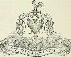 Blaeu's map[11] based on Pont's original[12] "Glasgow and the county of Lanark" map c.1596 depicting Ardry (Airdrie), Burnsyd (Burnfoot), Carnhil (Cairnhill), Gartly (Gartlea), and Ruchsols (Rochsoles) amongst others.Arms of Airdrie - The town's motto is the Latin word Vigilantibus (Being Watchful). It comes from Aitcheson of Rochsolloch[13]