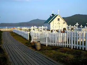Akutan began in 1878 as a fur storage and trading port for the Western Fur & Trading Company. The company's agent established a commercial cod fishing and processing business that quickly attracted nearby Unangan to the community. A Russian Orthodox church and a school were built in 1878, but was replaced by the St. Alexander Nevsky Chapel, built in 1918.