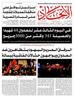 Al-Ittihad (Arabic: الاتحاد, lit. 'The Union') is an Arabic language daily newspaper in Israel. Based in Haifa, it was established in 1944 and is owned by the communist Maki party. It is the oldest Arabic media outlet in Israel and considered the most important.[1] The newspaper is currently edited by Aida Touma-Suleiman.