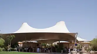Al Ain Zoo (Arabic: حَدِيْقَة ٱلْحَيْوَانَات بِٱلْعَيْن, romanized: Ḥadīqat Ḥaywānāt Bil-ʿAyn), also "Al Ain Wildlife Park & Resort" [1] [6] or simply "Al Ain Wildlife Park" (Arabic: مُتَنَزَّه ٱلْعَيْن لِلْحَيَاة ٱلْبَرِيَّة, romanized: Mutanazzah Al-ʿAyn Lil-Ḥayāt Al-Bariyyah),[3] [7][8] is a 400-hectare (990-acre) zoo located in the foothills of Jebel Hafeet in Al Ain, Abu Dhabi, the United Arab Emirates. It is primarily composed of ungulates and herbivores, such as Arabian antelopes. It also holds oryx, eland, gazelle, and lechwe, as well as the rare white lion and Nubian giraffe. [9] There are 68 species of mammals, 88 species of birds and 35 species of reptiles available in the 50 hectares of zoo houses.[10]