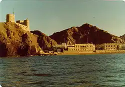 - ^ The modern city of Muscat lies about 4 kilometres (2.5 mi) to the west of the port of Old Muscat and its neighboring port of Muttrah, and greater Muscat extends further westward along the coast.[5]