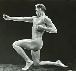 Urban began his career as a commercial photographer.[4] In 1937, he began advertising his physique photographs in the back pages of Strength & Health magazine.[5] At the time, Urban shot mostly nude photographs.[6] The catalogue sheets sent to customers were doctored with "inked-in" posing straps, but these would be omitted from full-sized prints purchased from the catalogue.[7]