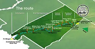 The Alabama Scenic River Trail (ASRT) is a water trail that spans the state of Alabama.[1] The trail starts in northeast Alabama on the Coosa River's Weiss Lake at the Georgia-Alabama state line and ends at Fort Morgan, Alabama, where Mobile Bay meets the Gulf of Mexico. It comprises sections of the Coosa, Tallapoosa, Alabama, and Mobile rivers.