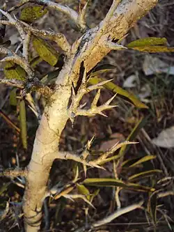 The wood is said to be hard and close-grained because of which good finishing is possible. It is used to make ornamental work, pestles and rollers and also is good as a fuel wood.[2][3] The stems because of its sharp ends are used as a spear in Kenya. The twigs are also used as toothbrush in India. It is considered to be good for making musical instruments and for making furniture as well.