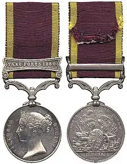 - ^ "Promotions for Services in China", Hampshire Advertiser & Salisbury Guardian, 15 August 1857, p. 8.