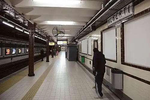 Alberti is a station on Line A of the Buenos Aires Underground.[1] The station belonged to the inaugural section of the Buenos Aires Underground opened on 1 December 1913, which linked the stations Plaza Miserere and Plaza de Mayo.[2] Like the Pasco station, it is one of two stations of the line which only has one platform, in this case only serving passengers heading towards San Pedrito. The other platform (the ghost station Alberti Norte) is located just a few meters away, but was closed in 1953 since the proximity of Pasco station meant having so many stops in such quick succession slowed the line's frequency.[3]