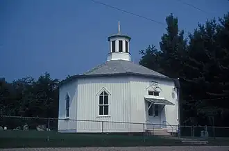 The chapel seats as many as 300, a surprising number for such an apparently small building. A possibly apocryphal account of the origins of the octagonal design suggests that the form was chosen "so that the devil couldn't corner you in it."[2] Suffering from advanced deterioration the chapel was entirely rebuilt in 2004, with little of the original fabric remaining.[3]