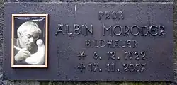 Albin Moroder worked until his death and was still creative and presented in a private audience in November 2005 to Pope Benedict XVI a crucifix. Moroder's grave is located on the Waldfriedhof Mayrhofen.