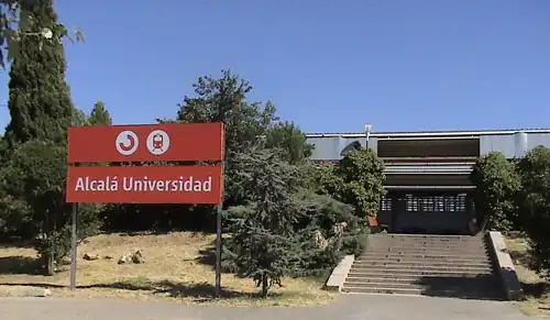 Alcalá de Henares Universidad is a railway station serving the University of Alcalá in the Community of Madrid, Spain. It is situated on the Madrid–Barcelona railway and is owned by Adif. The station is served by Cercanías Madrid lines C-2 and C-8.