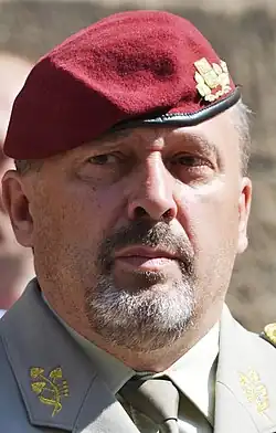 Between 1987 and 1990, he worked at the 4th tank division in Jihlava, where he was a tank platoon commander up to tank battalion commander within the tank regiment units. In the years 1990 to 1992, he was the battalion commander of the reserve preparation group of the 13th tank material depot. He was deployed in Yugoslavia where he participated in Evacuation of Karin Base.[1] Between 1994 and 1997, he held positions in the 4th Rapid Deployment Brigade in Havlíčkův Brod, where he successively performed the functions of officer of the mechanized troop training group, officer of the parachute and airborne training group and officer of airborne training.