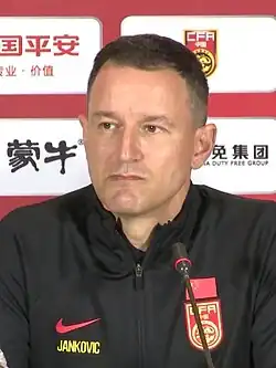 On 24 February 2023, he was appointed new head coach of China.[6] At the 2023 AFC Asian Cup, he led China to its worst ever performance in their history, failing to score a single goal and won only two points at the group stages. Following Syria's 1–0 win over India, China were eliminated from the competition. Janković received significant criticism for his strategy, his choice in the selection, and his questionable options, which contributed to China's inability to score a single goal in the tournament and resulted in their eventual elimination.[7] The same day, it was reported that he was fired from the position as coach of China, and had returned to his homeland for vacation, although the final decision remained to be seen.[8] It was later confirmed that Janković's contract would not be extended following the failure in Qatar on 31 January 2024, and he was dismissed from the position.[9]