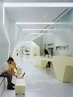 in 2007, Hani Rashid and Lise Anne Couture Asymptote Architecture (New York) designed the New York city flagship store for Alessi in the SoHo neighborhood on Greene Street. The space featured an Alessi gallery, espresso bar and retail in a renovated historic loft building. Asymptote was responsible for not only the interior design of the space but also branding and the graphic identity, updating Alessi's image from its 1980s Postmodern style to a contemporary architectural ethos.