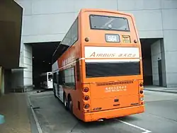 The Alexander ALX500 was fitted to Dennis Trident 3 and Volvo Super Olympian chassis (they could be distinguished by the design of the engine compartment: with round indicators for Dennis and square indicators for Volvo), and came in lengths of 10.6, 11.3 and 12 metres (35, 37 and 40 foot). The ALX500-bodied buses were sold new to Citybus,[1] Kowloon Motor Bus,[1] Long Win Bus,[1] New World First Bus[2] and Kowloon-Canton Railway Corporation[3] in Hong Kong. Due to the climate there, all of them were fitted with air conditioning systems, and as a result lacked a rear window on the lower deck. The extra length of the buses mean the seating capacities were near the 100 mark for the 12.0 metre variant.[4]