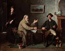 He returned to the National Gallery school 1882-87 to its School of Art[7] under George Folingsby. A history painting he completed at the end of his course, Divided Attention, which had won 'first general prize' in an exhibition of student work at the National Gallery School, was praised in an extended analysis filling a column the Bendigo Advertiser when it was exhibited at the Sandhurst (Bendigo) Fine Art Gallery, where it is now in the collection.[8]
