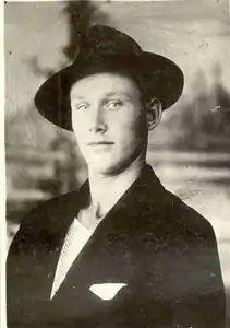 Labutkin was born in 1910 in St. Petersburg to a working-class family. At the end of the 1920s, he got a job as a gunsmith at the Krasnoznamyonets arms factory. In 1930, while engaged in uprooting stumps with pyroxylin, Labutkin accidentally produced a premature detonation, as a result of which he lost his right hand. In this regard, he could no longer work as a gunner, and therefore he got a job as a steam conductor at the Okhta Combine in Leningrad.[1] Labutkin was extremely passionate about fashionable things. According to the memoirs of his acquaintances, he was very fond of wearing a dark jacket and a wide-brimmed hat, which created an opinion that he was an important personality.[1]