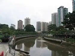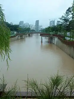 Alexandra Canal is one of the upper reaches of the Singapore River and Sungei Pandan, becoming the Singapore River after Kim Seng Bridge.[1] The 1.2 km long canal stretches from Tanglin Road to Delta Road. Reconstruction of Alexandra Canal between Tanglin Road and Kim Seng Road took place from 1997 to 2008 to improve the structural condition of the canal and to alleviate flooding in the catchment. In 2011, a 250-metre stretch of Alexandra Canal, between Zion Road and Kim Seng Road, was reconstructed to improve drainage and prevent floods.[2] A 200m stretch of the open waterway near Tanglin Road was decked over to create a water cascade and water play area. The deck also provides a point from which the public can have a view of the waterway downstream.