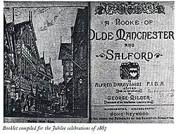 Darbyshire was an art critic for the Manchester Guardian from 1868 to 1874[1] and thereafter, until 1905, he was an art critic for the Manchester Courier. He wrote a number of books on architecture, heraldry, and art – including A Booke of Olde Manchester and Salford containing about 70 illustrations of ancient buildings, which he compiled for the Jubilee celebrations of 1887.