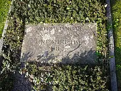 In the 1920s, Polgar lived mainly in Berlin and from here he supplied as a freelancer many articles for daily newspapers such as Berliner Tageblatt, Prager Tageblatt and for the weekly published literary magazine Die Weltbühne. As a engaged columnist he enriched the college in which such illustrious people worked like Erich Kästner, Else Lasker-Schüler, Erich Mühsam, Kurt Tucholsky, Robert Walser.[5] In October 1929 he married Elise Loewy, born Müller, called Lisl, from Vienna.[6] After the Nazi regime came to power, there was no place for the “Austrian Jew and left-liberal anti-fascist Polgar in National Socialist Germany”, as Ulrich Weinzierl points.[7] At the beginning of March 1933 he fled to Prague. On May 10, 1933, his books were burned. Later he went to Vienna. In 1937/38 he wrote about Marlene Dietrich; a text found by his biographer Ulrich Weinzierl in New York in 1984, and posthumously published in 2015. During the Anschluss in March 1938, Alfred and Lisl Polgar were in Zurich. Because he could not get a work permit there, they fled to Paris. After the Germans invaded France in June 1940, he fled to Marseille, from where in October 1940, with the help of the Emergency Rescue Committee, he managed to escape via the Pyrenees to Spain and via Lisbon to emigrate to the USA.[8] In Hollywood he worked, among other things, as a screenwriter for Metro-Goldwyn-Mayer.[9] From 1943 he lived in New York, where he and his wife received American citizenship.[10] In 1949 they returned to Europe and settled in Zurich. In 1951 Polgar received the Preis der Stadt Wien für Publizistik which has been awarded annually since 1951 and endowed with eight thousand Euros. He died in 1955 and was buried in the Sihlfeld cemetery in Zurich.