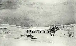 In leading his regiment across the Northwest Territories, Colonel Wyndham came to admire the wild beauty of Alberta and recognised its agricultural potential. He decided to return west in 1886 and was given a North-West Rebellion script on one quarter, and another quarter of homestead land, at a prime site by the Bow river near Carseland to the south east of Calgary, a combined total of 320 acres. His wife and children followed in 1887, Mrs Wyndham recording in her diary that the family moved into their cottonwood log house at a temperature of 20 °F (−7 °C) below zero.[4] Colonel Wyndham soon became one of the most prominent ranchers in Alberta. He named his ranch Dinton, after his family's ancestral home and estate in Wiltshire, and soon the whole district became known as Dinton, acquiring a post office and an Anglican church dedicated to St Thomas which stands to this day.[5]