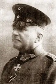 In October 1915, Larisch was transferred to the Eastern Front, where he was appointed commander of the 81st Reserve Division, with which he participated in the battles around Pinsk and the Pripyat wetlands.[1][3] He commanded the division until April 1916, when he became commander of the Guard Ersatz Division.[1] The division, back on the Western front, took part in the Battle of Verdun and subsequently in the Battles of Champagne. In April 1917, the division distinguished itself in the Second Battle of the Aisne, after which Larisch was awarded the 1st Class of the Order of the Crown for his services there.
