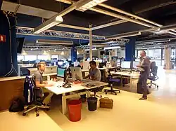 The staff of 250 people is headquartered since 2018 in The Hague and has editorial offices in Amsterdam (Economy and City), at Binnenhof in The Hague (National political news) and Brussels (European political news).[4][11][12] Until the 1970s, the group was based on the Spuistraat in central Amsterdam.[13]