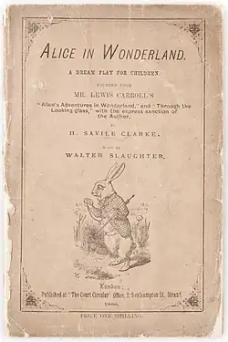 Alice in Wonderland is a musical by Henry Savile Clarke[1] (book and lyrics) and Walter Slaughter (music), based on Lewis Carroll's books Alice's Adventures in Wonderland (1865) and Through the Looking-Glass (1871).[2] It debuted at the Prince of Wales's Theatre in the West End on 23 December 1886. Aubrey Hopwood (lyrics) and Walter Slaughter (music) wrote additional songs which were first used for the 1900 revival.