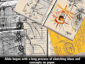Being a Myst-like point-and-click adventure game,[9][10] Alida sees the player navigate through a series of screens.[11] Spanning 5 CDs,[12] the game focuses on interaction with puzzles to progress to new locations. The puzzles lean toward musical themes and vary in difficulty. It incorporates FMV scenes and CGI animations, both blended into the scenery.[13]