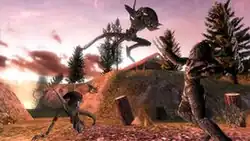 The player character also has stealth camouflage and several vision modes that allow him to see in the dark, such as infrared vision.[5] Health is represented by a segmented life bar that regenerates after a successful kill,[2] and an energy bar is also available to provide power for the Predator's weapons.[6] In addition to destroying Aliens, the Predator must eradicate other traces of their presence, including facehugger husks.[7] Aliens, husks, humans, and other potential targets are all represented by icons on a heads-up display.[8] The game's camera is manipulated by pressing the PlayStation Portable (PSP)'s triggers,[7] and the Predator can "lock on" to opponents using a first-person view to target them with his ranged weapons.[9]