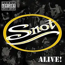 Alive! is a live album by Snot. The songs were all performed and recorded at The Palace in Hollywood, California in May 1998.[3] Released on July 30, 2002, it peaked at #12 on the Billboard Heatseekers chart.[4]