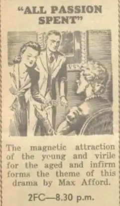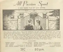 All Passion Spent is a 1939 Australian radio play by Max Afford.