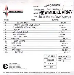 All of This – The "Live" Rarities is a live compilation album by British rock band New Model Army released in 1999 by EMI Records. According to the album's cover these tracks are a compilation of New Model Army's finest and rarest live b-sides and extra tracks.
