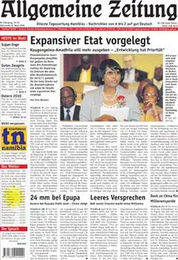 The Allgemeine Zeitung is a Namibian newspaper. It is written by 10 editors; most of the staff members are either born or naturalized Namibians. It is read mostly by German-speaking Namibians (~15,000).[2] The newspaper leans liberal-conservative.[3]
