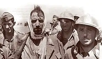 More trouble was experienced from the difficult weather conditions (especially on the southern beaches) and unexpected hidden offshore sandbars than from the coastal divisions. Some troops landed in the wrong place, in the wrong order and as much as six hours behind schedule,[65] but the weakness of the defensive response allowed the Allied force to make up lost time.[60] Nevertheless, several Italian coastal units fought well; the 429th Coastal Battalion (under Major Marco Rubellino[66]), tasked with defending Gela and its beachhead, had lost 45 percent of its men, while the attacking U.S. Army Ranger Battalion lost several men to mines and machine-gun and cannon fire.[b] Gruppo Tattico Carmito (under Lieutenant-Colonel Francesco Tropea), tasked with defending Malati Bridge, defeated a Royal Marines Commando Battalion on 13 July with the help of the local middle-age reservists. The Italian 4th Self-Propelled Artillery Battalion attacked the Commandos with the help of the 372nd Coastal Defence Battalion, 553rd (under Captain Giovanni Sartor) and 554th (under Captain Fausto Clementi) Motorcycle Companies,[68] and three Panzer IV medium tanks.[69][70][c] The 246th Coastal Battalion (under Major Rollo Franco[71]) defeated British attempts to capture Augusta on the night of 11–12 July.[72]