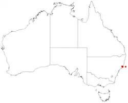 This she-oak is only known from near Myall Lakes, where it grows in sandy heath, shrubland and open woodland between Booti Booti National Park and Nabiac in eastern New South Wales.[3][5][6]