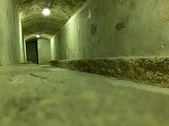 The Spanish city of Almería suffered up to 52 bombings from air and sea, with a total of 754 bombs dropped during the Spanish Civil War.[1] This led to the decision to create a system of underground shelters for the protection of approximately 40,000 civilians. These shelters measure more than 4.5 km long, and they are equipped with a surgery room and a food storage room. They were designed by the local architect Guillermo Langle Rubio,[2] being today the most important and better preserved shelters in all Europe.[3]