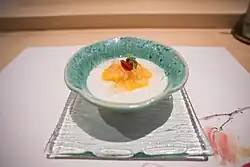 Ipswich almond pudding is a recipe that appears in the 18th century cookbook The Art of Cookery by Hannah Glasse. It's a sort of bread pudding thickened with blanched almonds and baked in puff pastry.[2] Elizabeth Moxon also uses balanced almonds to thicken bread pudding, that can be made with butter, suet or marrow and baked in "little tins". In one version of the pudding Moxon omits rose water and orange flower water, adding cinnamon and a little lemon peel instead. A sauce can be made for the pudding with wine and sugar.[3]