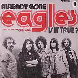 "Already Gone" is the opening track of the Eagles' album On the Border, which was released by Asylum Records on March 22, 1974.[3] It was released as the first single from the album in April 1974.[9][10] Its b-side was "Is It True".[9]